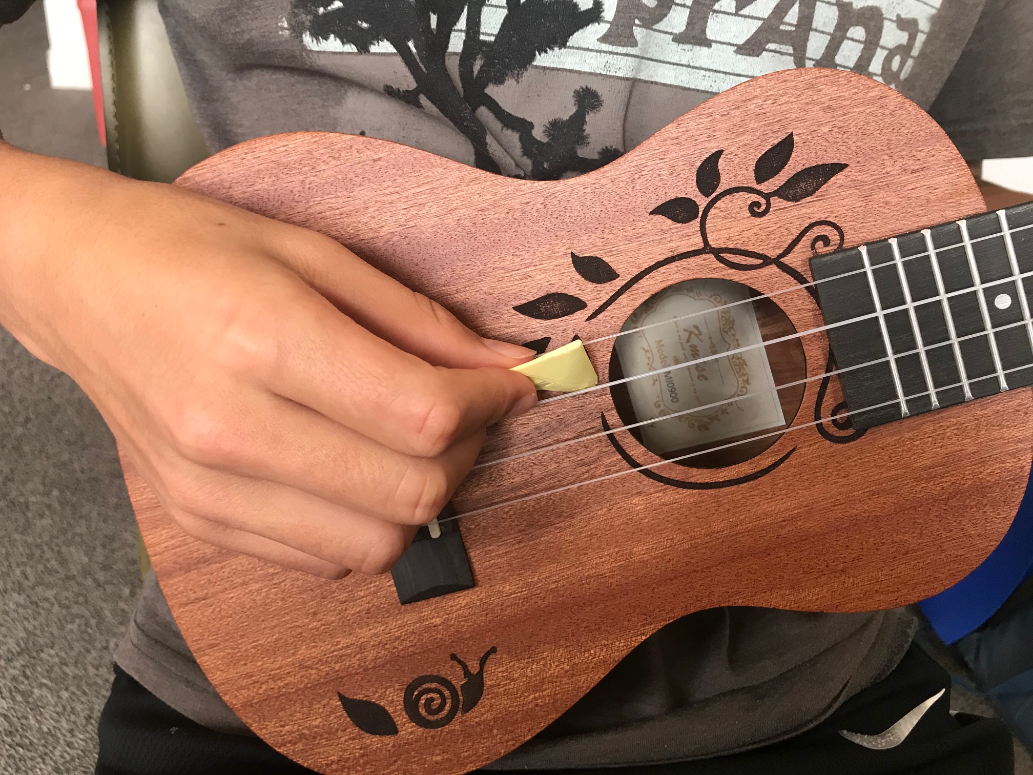 Or maybe I’m just chilling out because it’s the weekend. I pick up the ukulele and strum a couple of songs, hoping to lure another bird. My son improvises picks out of a folded Post-it and a bread bag tie and works at the chords of “Riptide.”