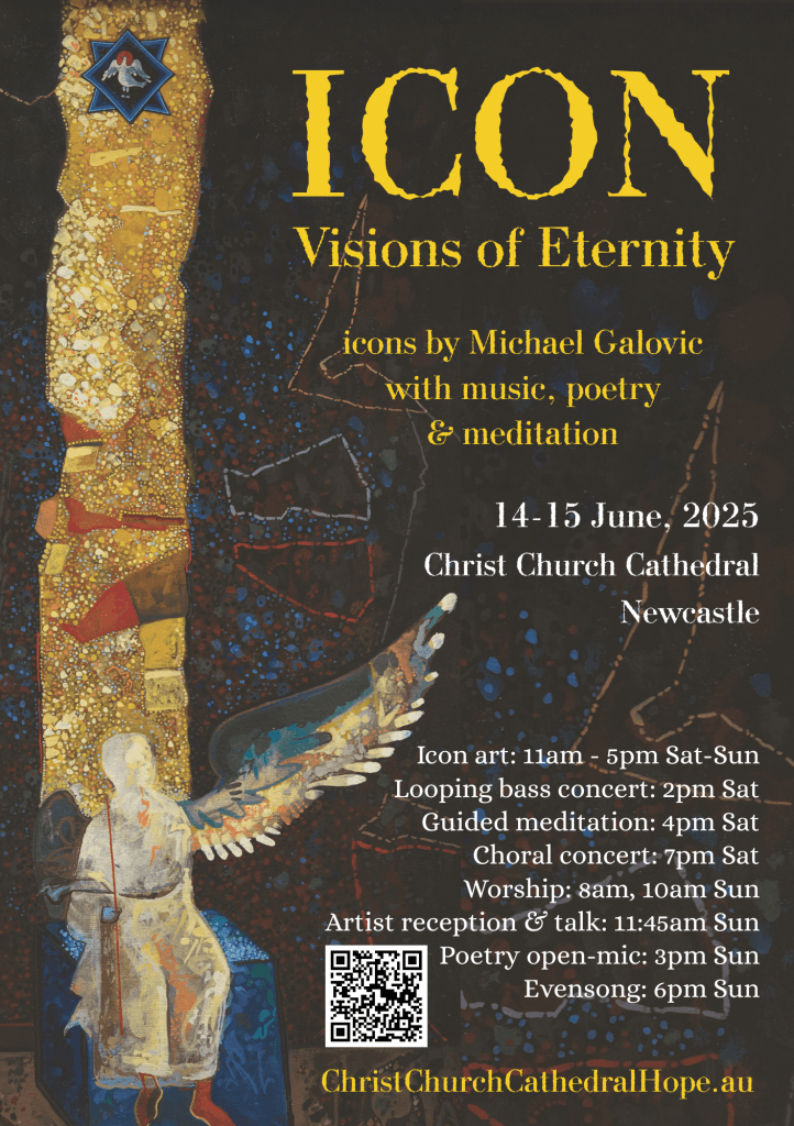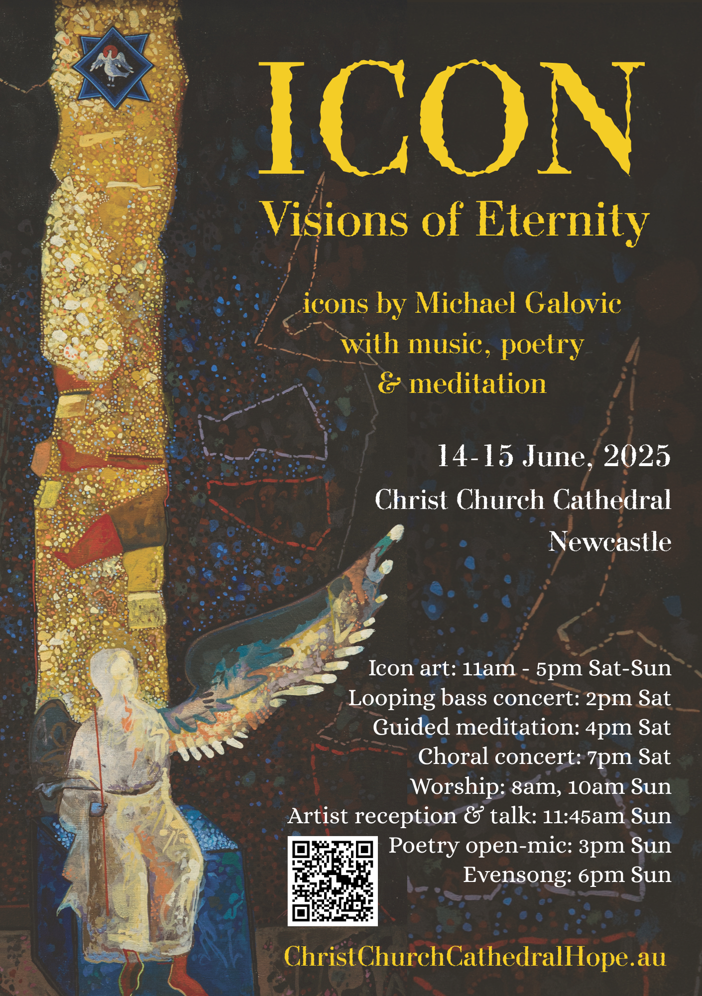 A weekend of music, poetry, meditation and stunning icons by internationally-renowned artist Michael Galovic at Christ Church Cathedral, Newcastle, on 14-15 June 2025