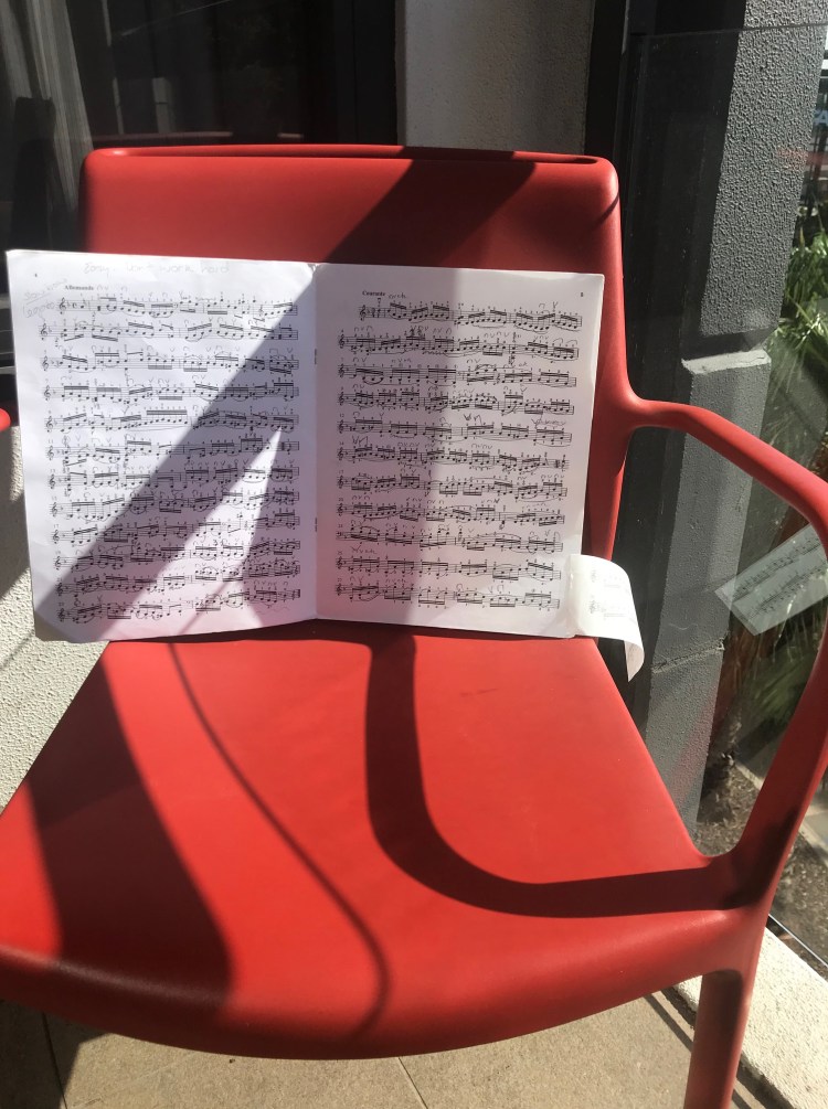 I play through more Bach, Telemann and Massenet, watching for birds and living in the moment.