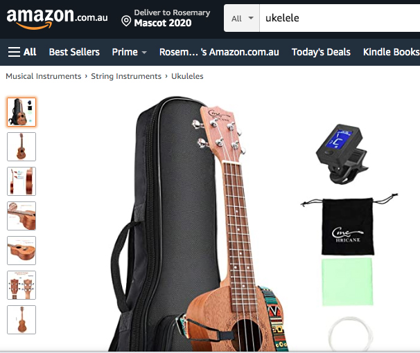 Then I open my email to discover a surprise gift from a very thoughtful friend: $100 to spend on a quarantine cheer-up item! I start scrolling through the Quarantine Hotel Facebook group to see what other people are doing for fun and there’s a woman on her balcony strumming a ukulele.